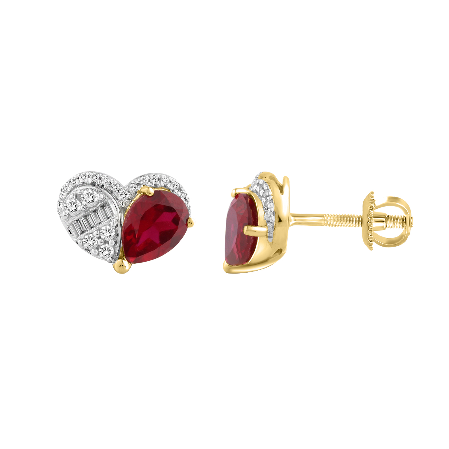 Home Earrings LADIES EARRINGS 1.00CT ROUND/PEAR/BAGUETTE DIAMOND14K YELLOW GOLD (CENTER STONE 0.75CT PEAR/EMERALD DIAMOND)