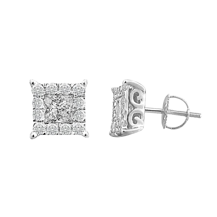 LADIES EARRINGS 1.00CT ROUND/PRINCESS DIAMOND 14K WHITE GOLD (CENTER STONE 0.60CT PRINCESS DIAMOND)