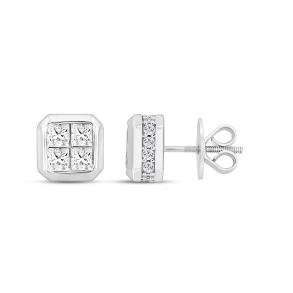 LADIES EARRINGS 1.00CT ROUND/PRINCESS DIAMOND 14K WHITE GOLD