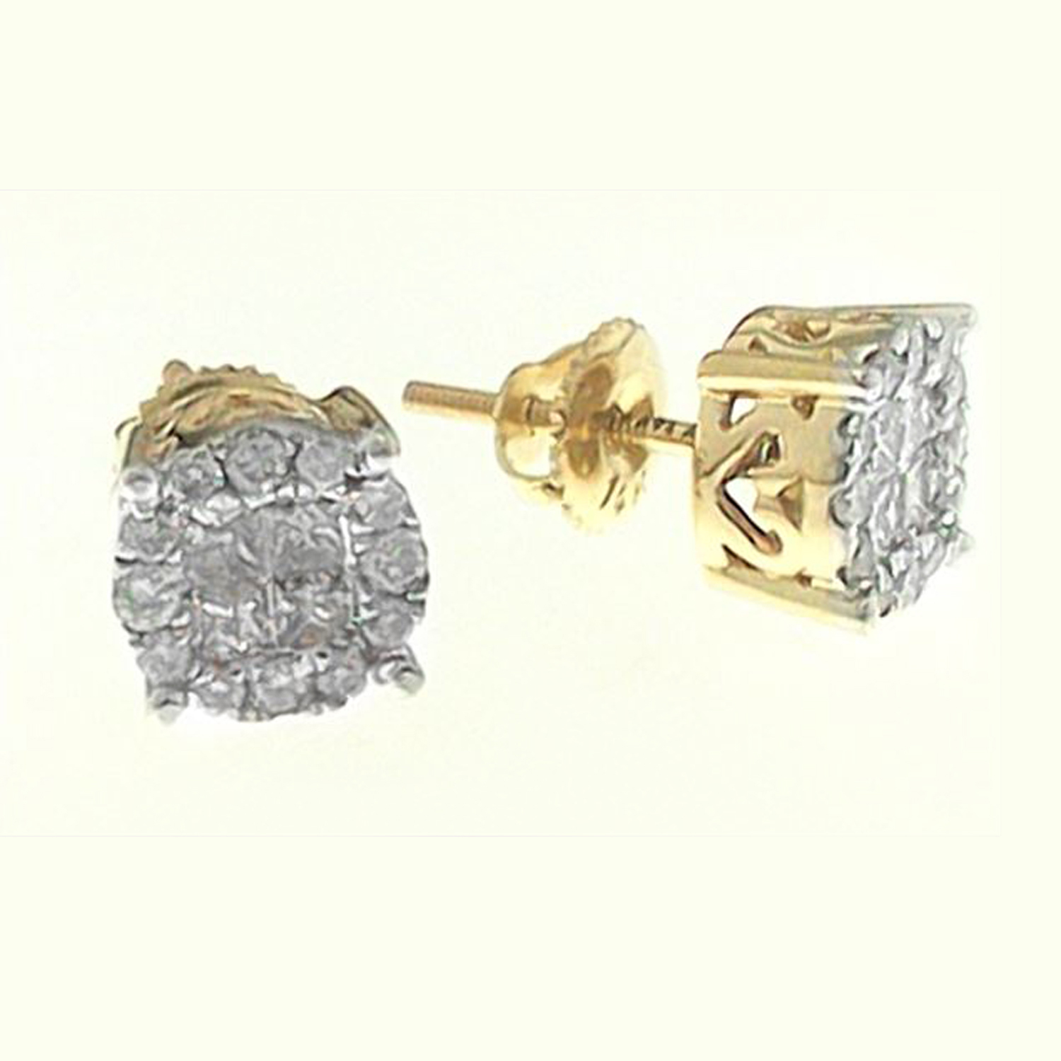 LADIES EARRINGS 1.00CT ROUND/PRINCESS DIAMOND 14K YELLOW GOLD