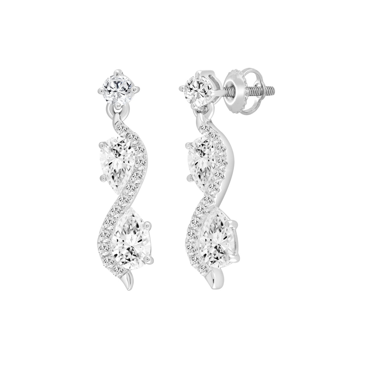 LADIES EARRINGS 1 1/2CT ROUND/PEAR DIAMOND 14K WHITE GOLD