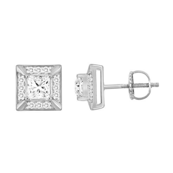 LADIES EARRINGS 1 1/4CT ROUND/PRINCESS DIAMOND 10K WHITE GOLD