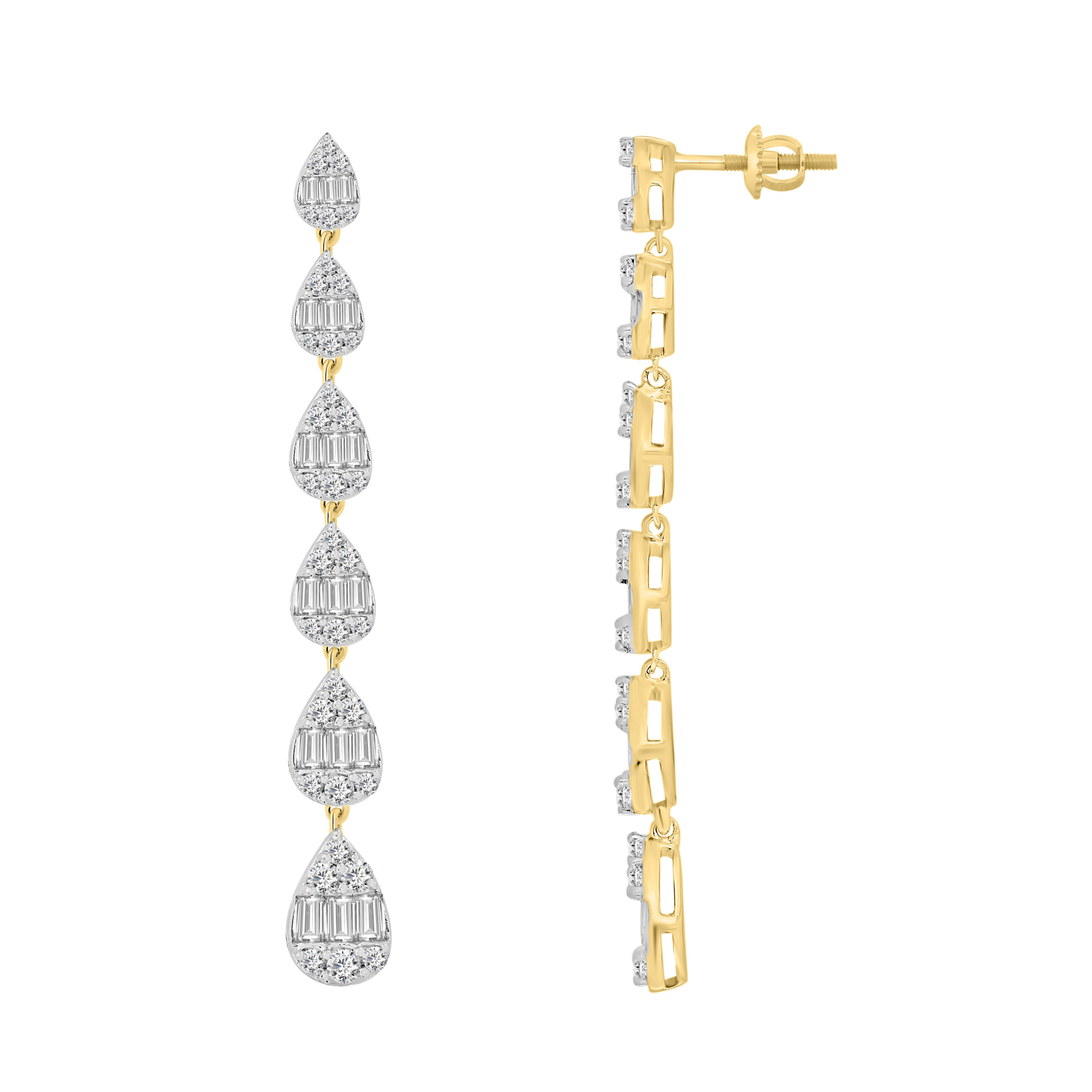 Home Earrings LADIES EARRINGS 1.10CT ROUND/BAGUETTE DIAMOND 14K YELLOW GOLD