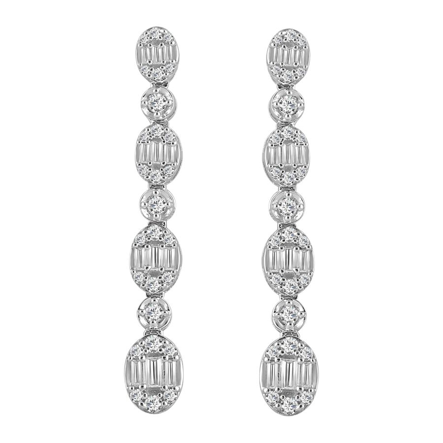 Home Earrings LADIES EARRINGS 1.25CT ROUND/BAGUETTE DIAMOND 14K WHITE GOLD
