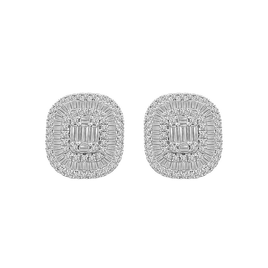 LADIES EARRINGS 1.25CT ROUND/BAGUETTE DIAMOND 14K WHITE GOLD