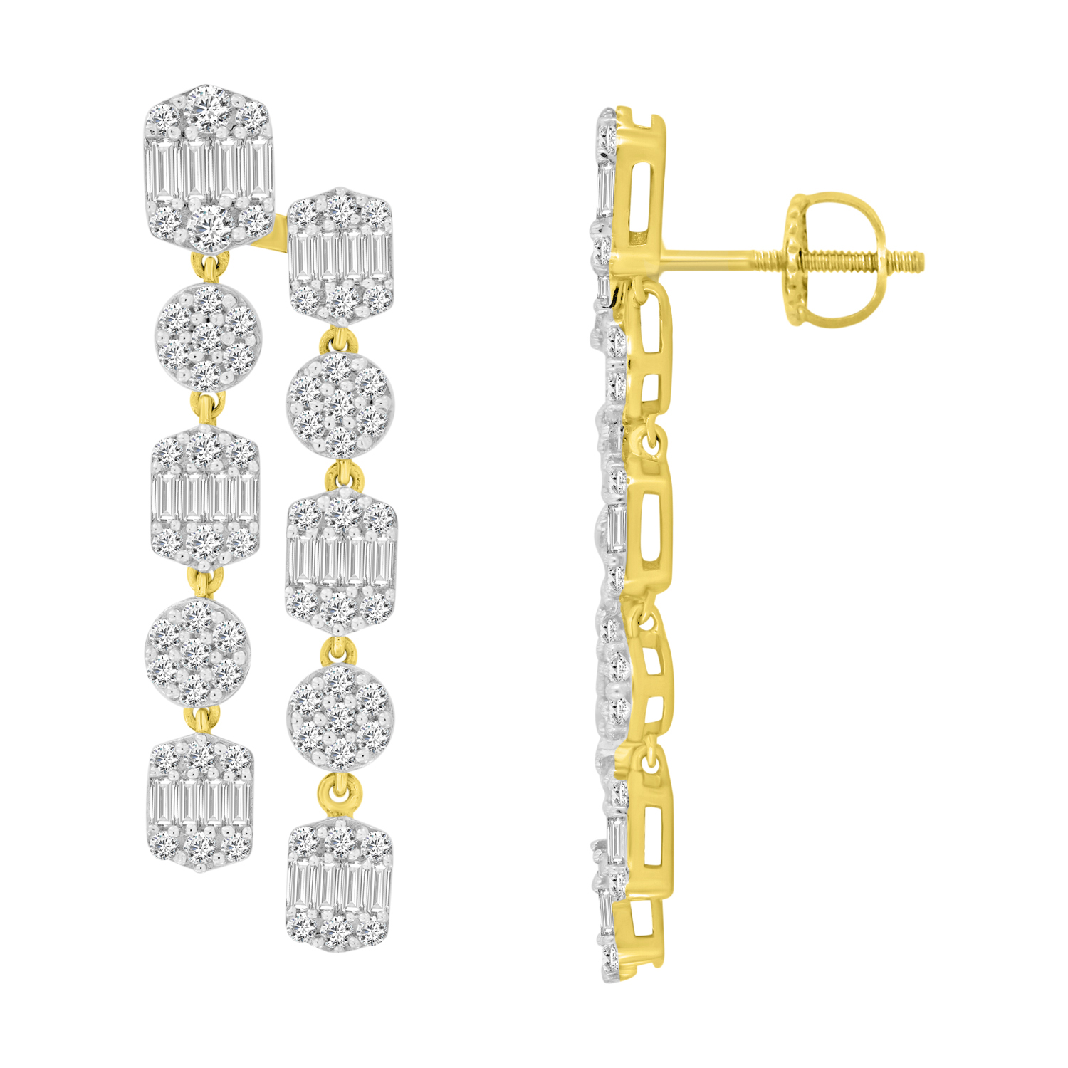 LADIES EARRINGS 1.50CT ROUND/BAGUETTE DIAMOND 14K YELLOW GOLD