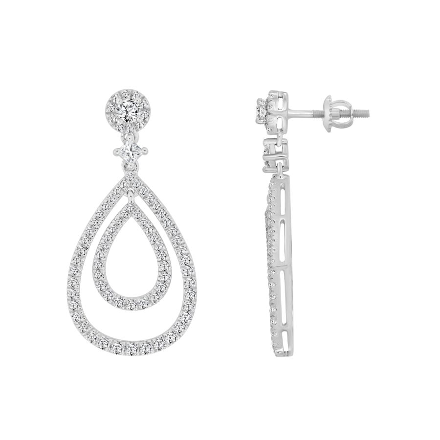 LADIES EARRINGS 1.50CT ROUND DIAMOND 14K WHITE GOLD