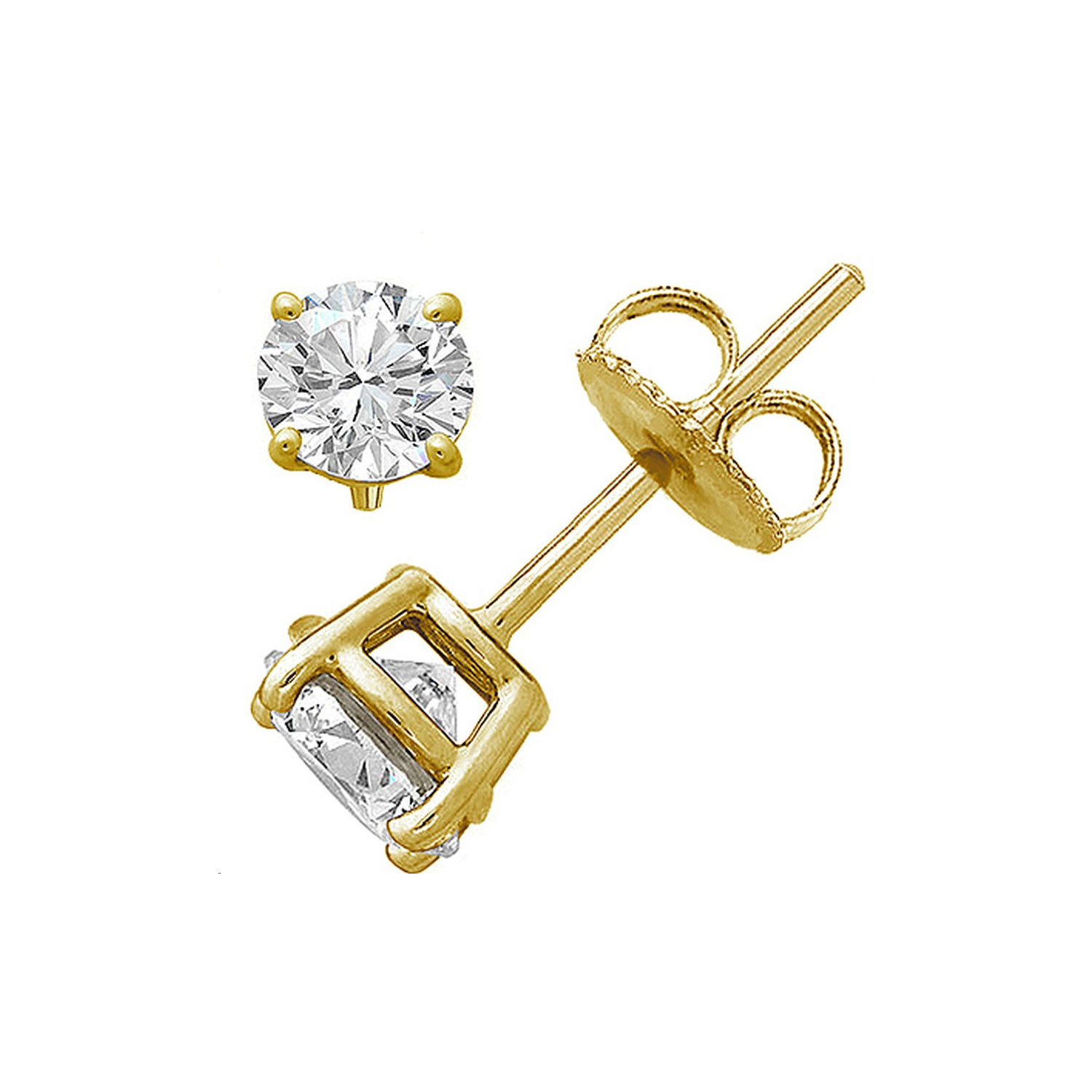 LADIES EARRINGS 1.50CT ROUND DIAMOND 14K YELLOW GOLD