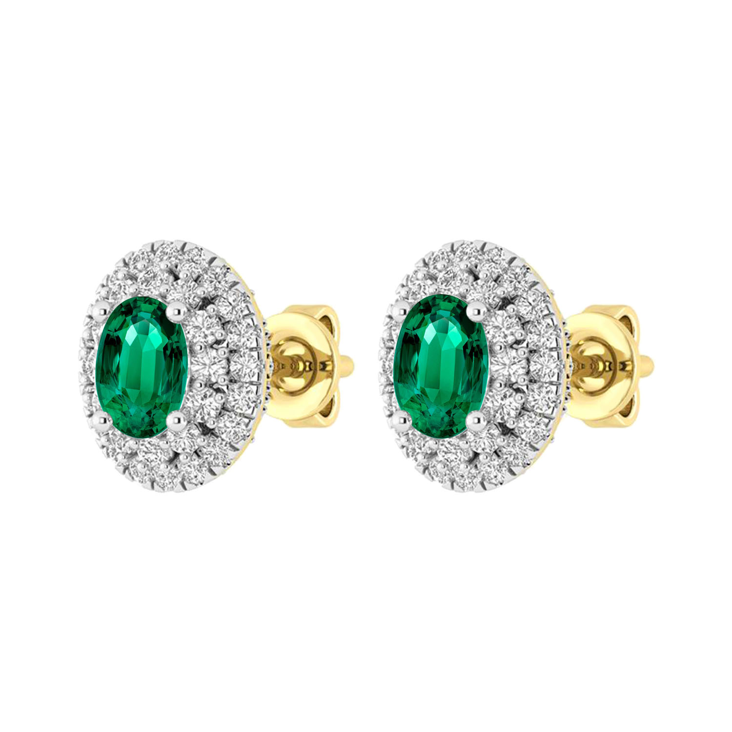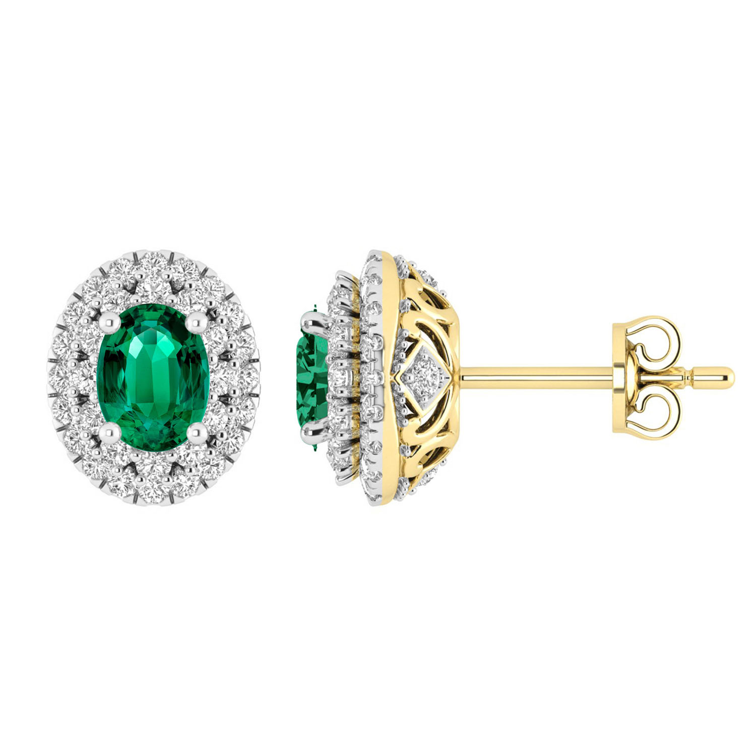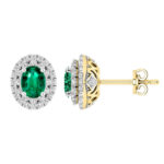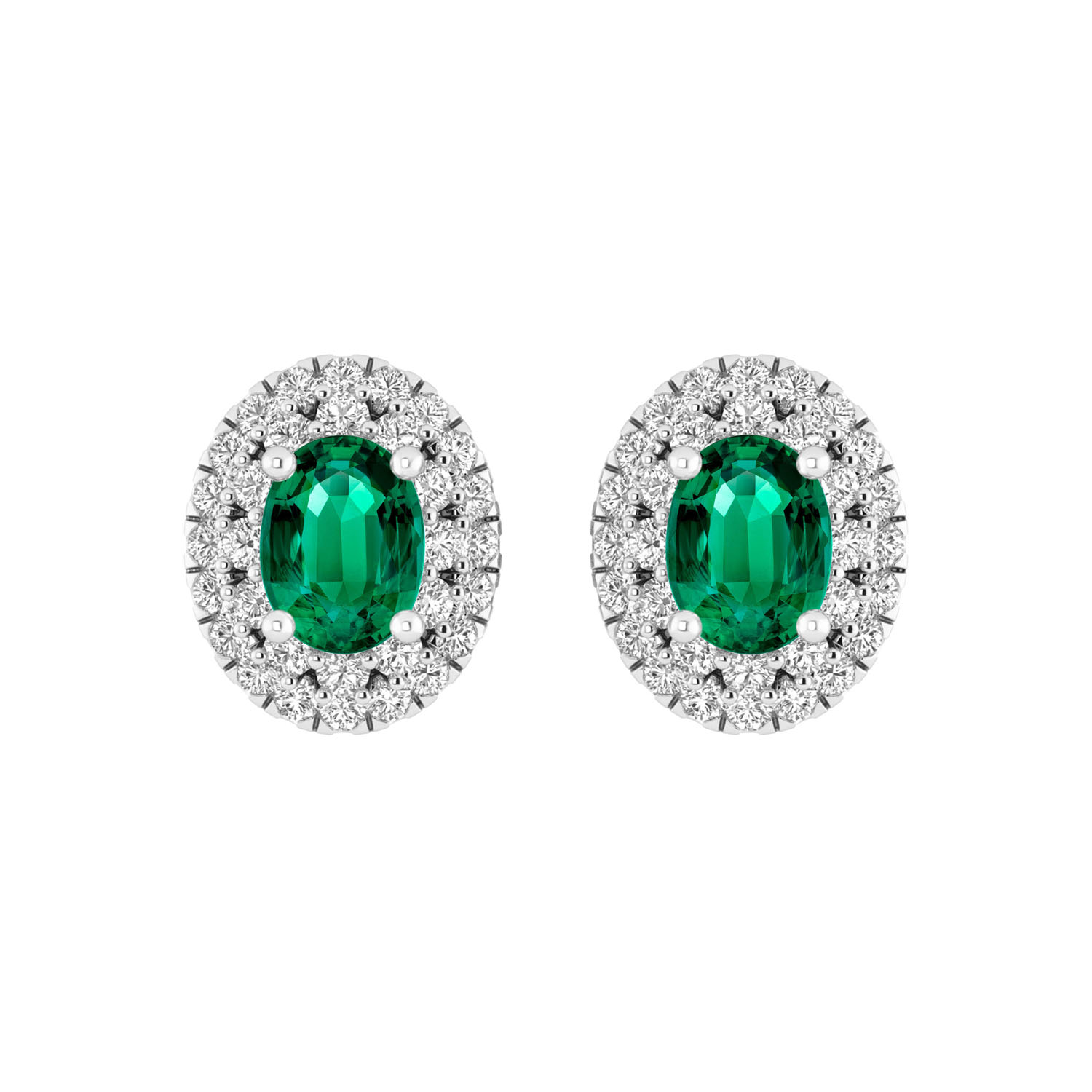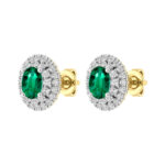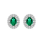 LADIES EARRINGS 1.65CT ROUND/GREEN EMERALD OVAL DIAMOND 14K WHITE GOLD (CENTER STONE 1.30CT GREEN EMERALD OVAL DIAMOND)