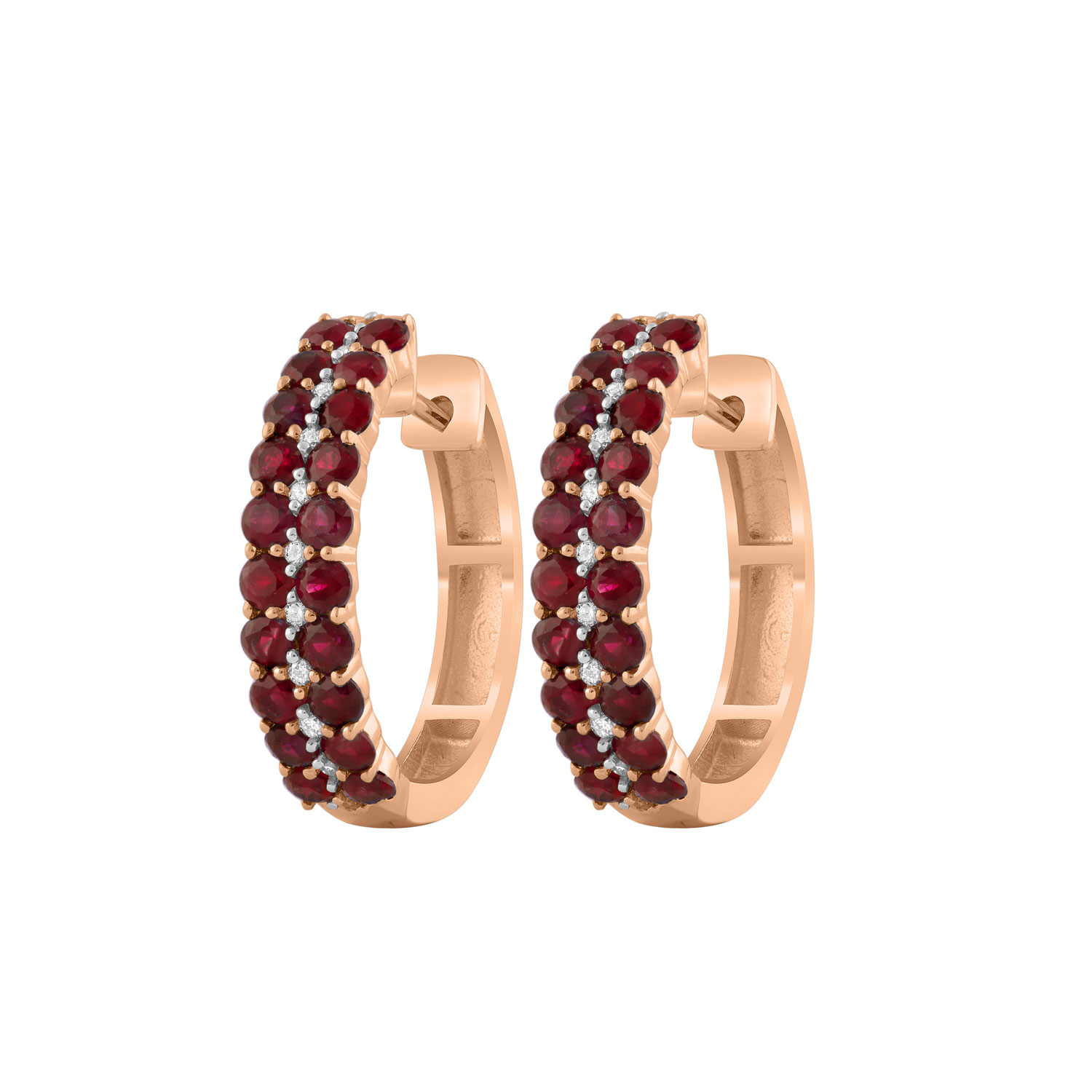 LADIES EARRINGS 1.88CT ROUND/RUBY DIAMOND 14K ROSE GOLD