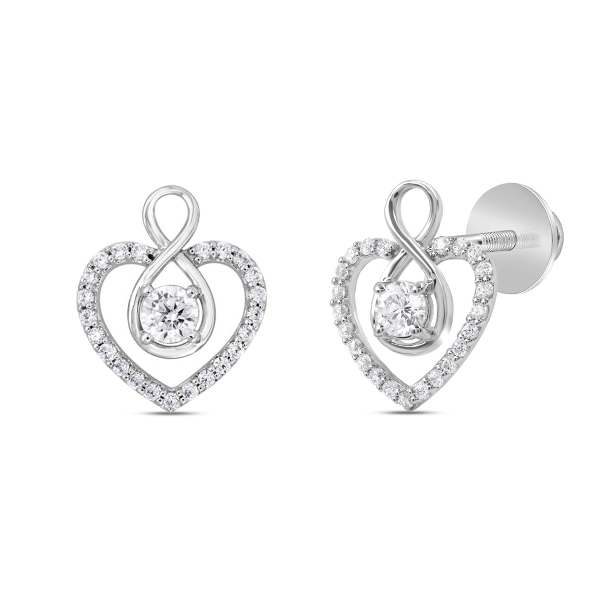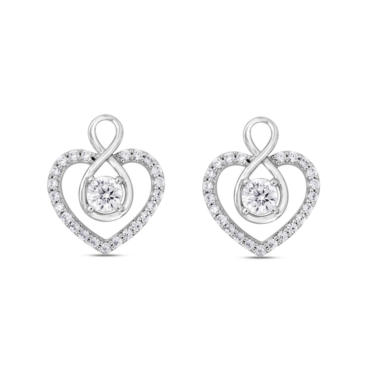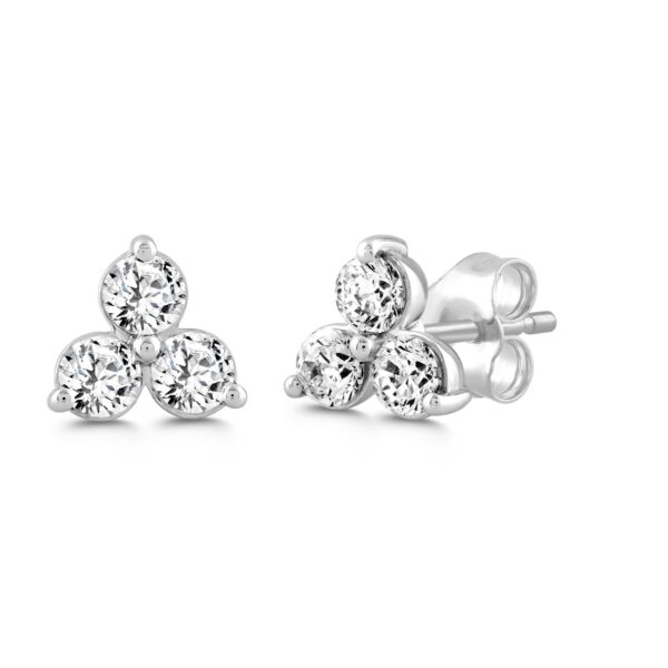 LADIES EARRINGS 1CT ROUND DIAMOND 14K WHITE GOLD
