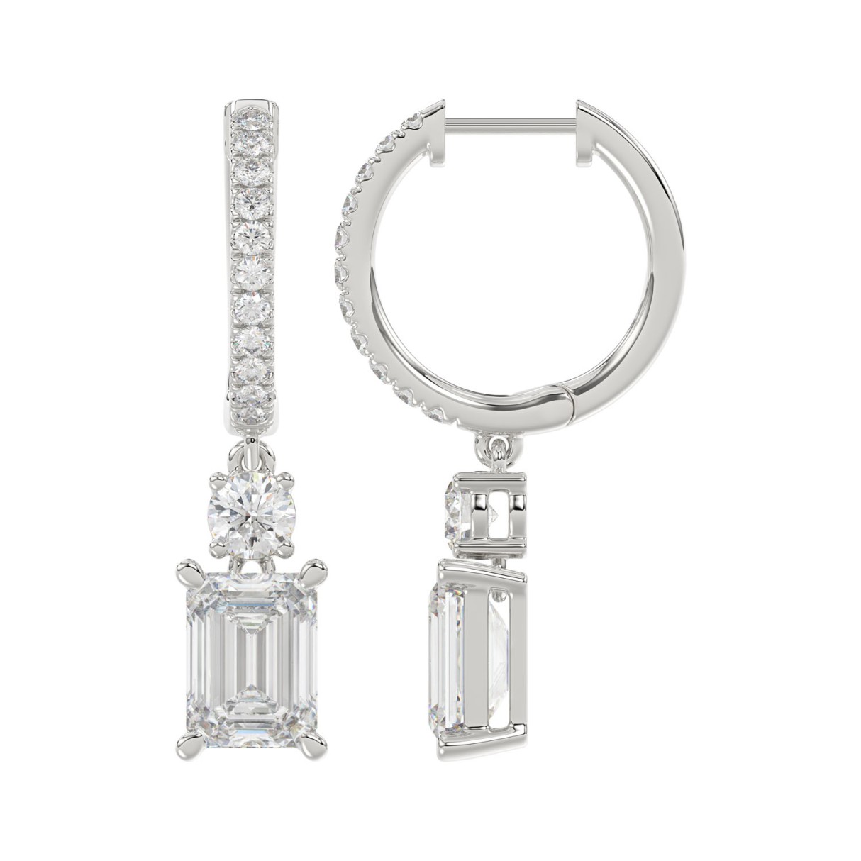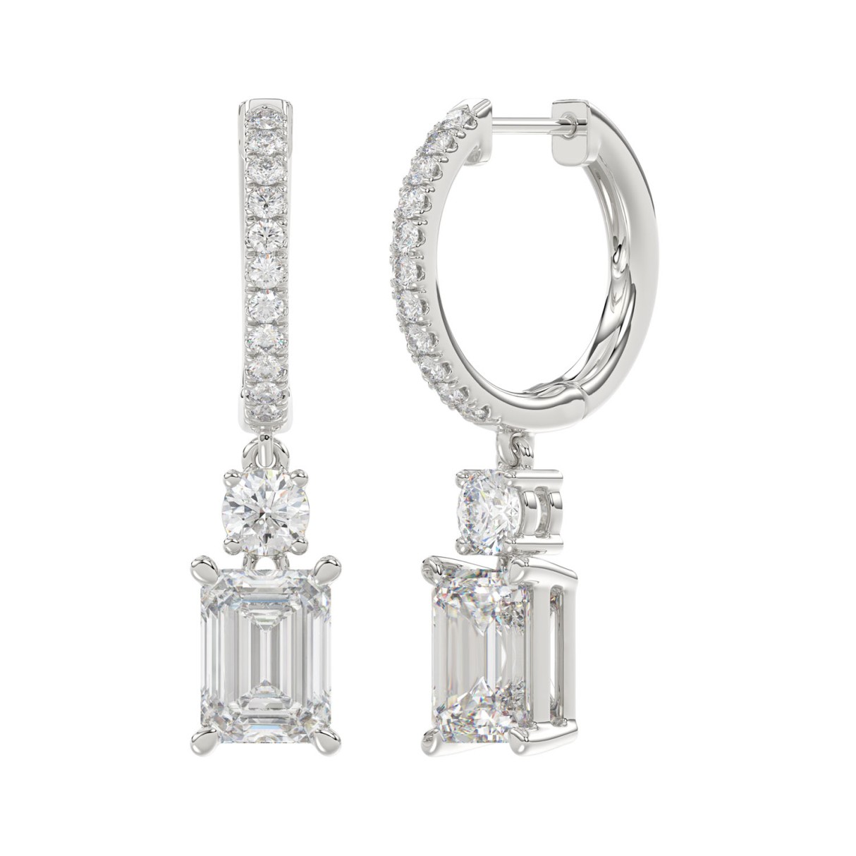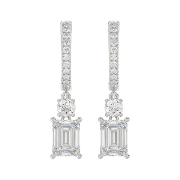 Home Earrings LADIES EARRINGS 2 1/2CT ROUND/EMERALD DIAMOND 14K WHITE GOLD