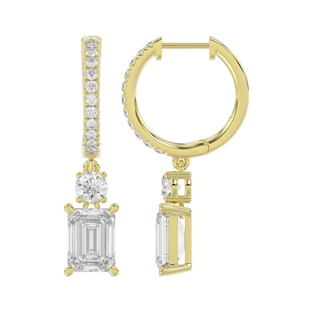 Home Earrings LADIES EARRINGS 2 1/2CT ROUND/EMERALD DIAMOND 14K YELLOW GOLD