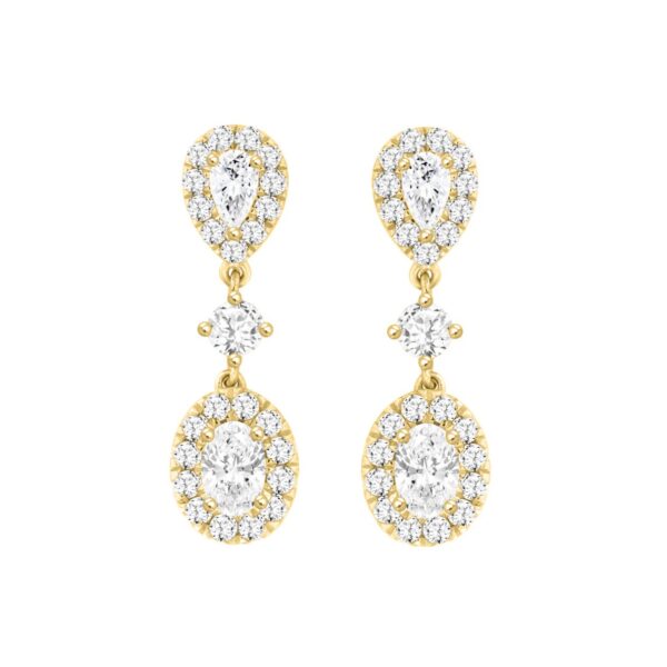 LADIES EARRINGS 2 3/4CT ROUND/OVAL/PEAR DIAMOND 14K YELLOW GOLD (CENTER STONE OVAL DIAMOND 1CT )