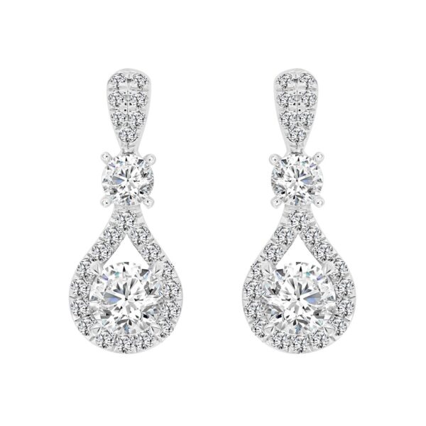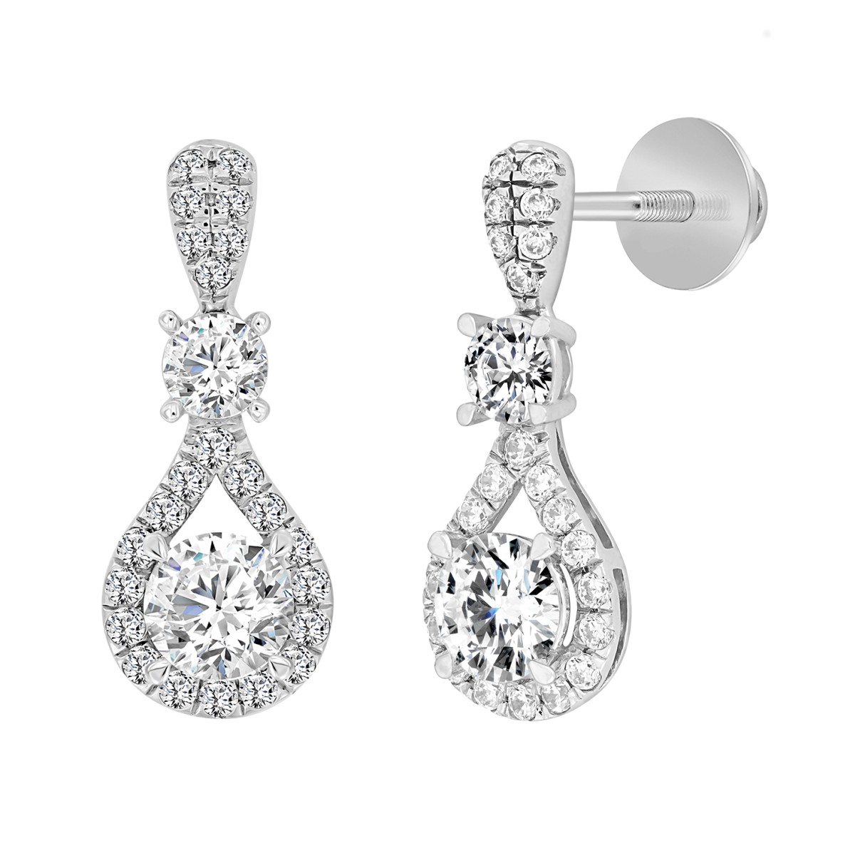 LADIES EARRINGS 3 1/2 CT ROUND DIAMOND 14K WHITE GOLD (CENTER STONE ROUND DIAMOND 2CT )