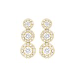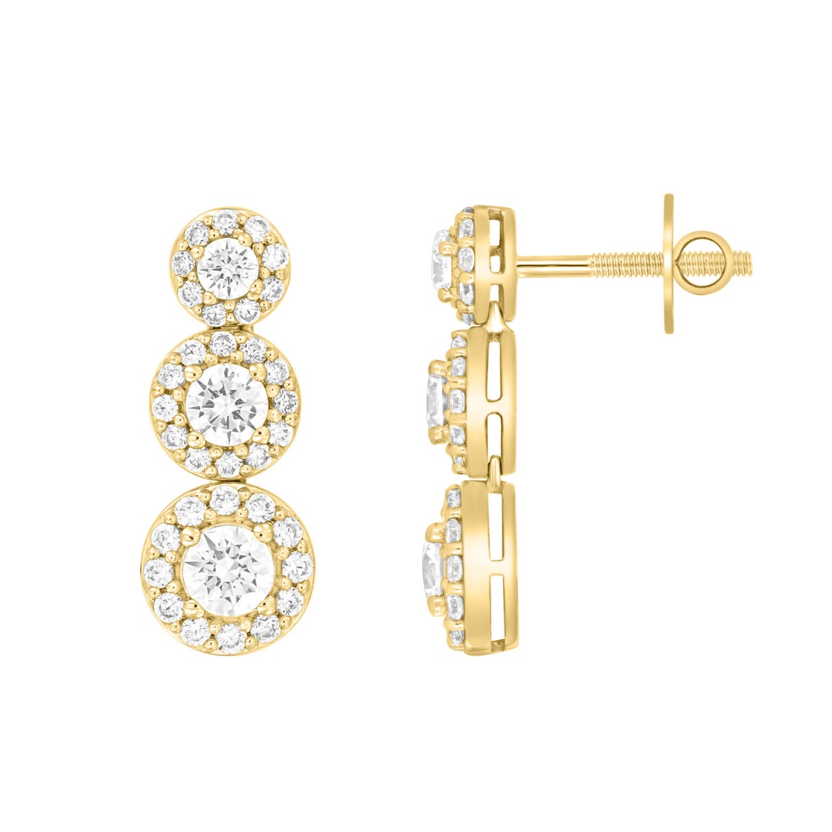 LADIES EARRINGS 3 3/4CT ROUND DIAMOND 14K YELLOW GOLD (CENTER STONE ROUND DIAMOND 1 1/3CT)