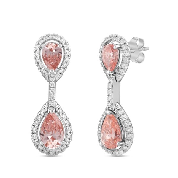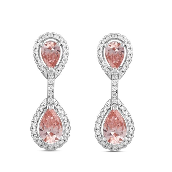 LADIES EARRINGS 3 3/4CT ROUND/PEAR DIAMOND 14K WHITE GOLD (CENTER STONE PEAR DIAMOND 2CT )