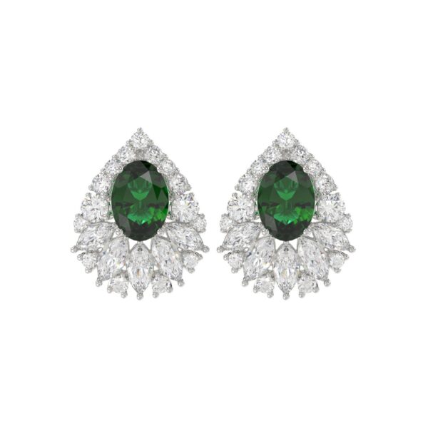 LADIES EARRINGS 4.50CT ROUND/MARQUISE/OVAL DIAMOND 14K WHITE GOLD (CENTER STONE GREEN EMERALD OVAL DIAMOND 2 1/2CT)