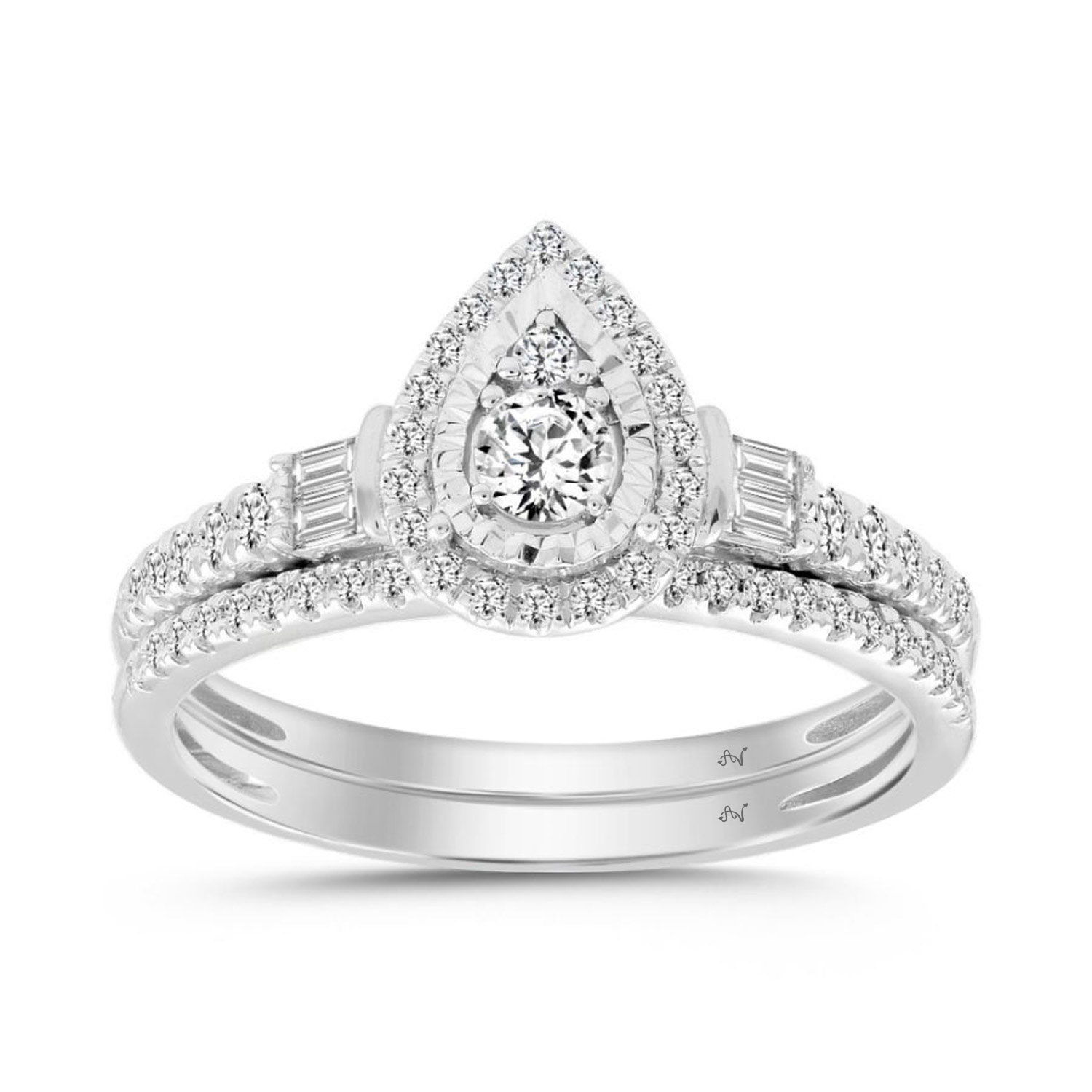 LADIES ENGAGEMENT RING 0.40CT ROUND/BAGUETTE DIAMOND 10K WHITE GOLD