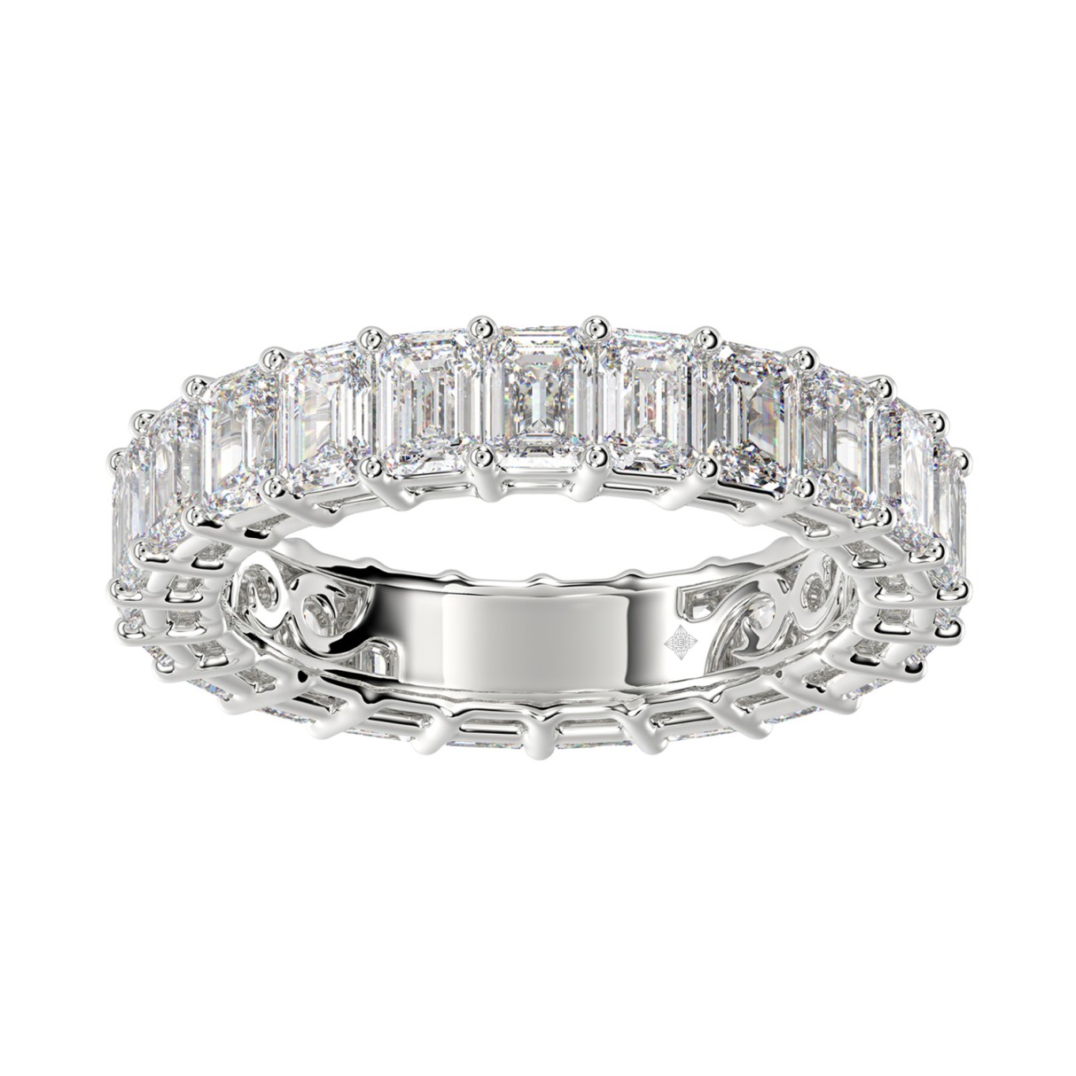 LADIES ETERNITY BAND 3CT EMERALD DIAMOND 14K WHITE GOLD