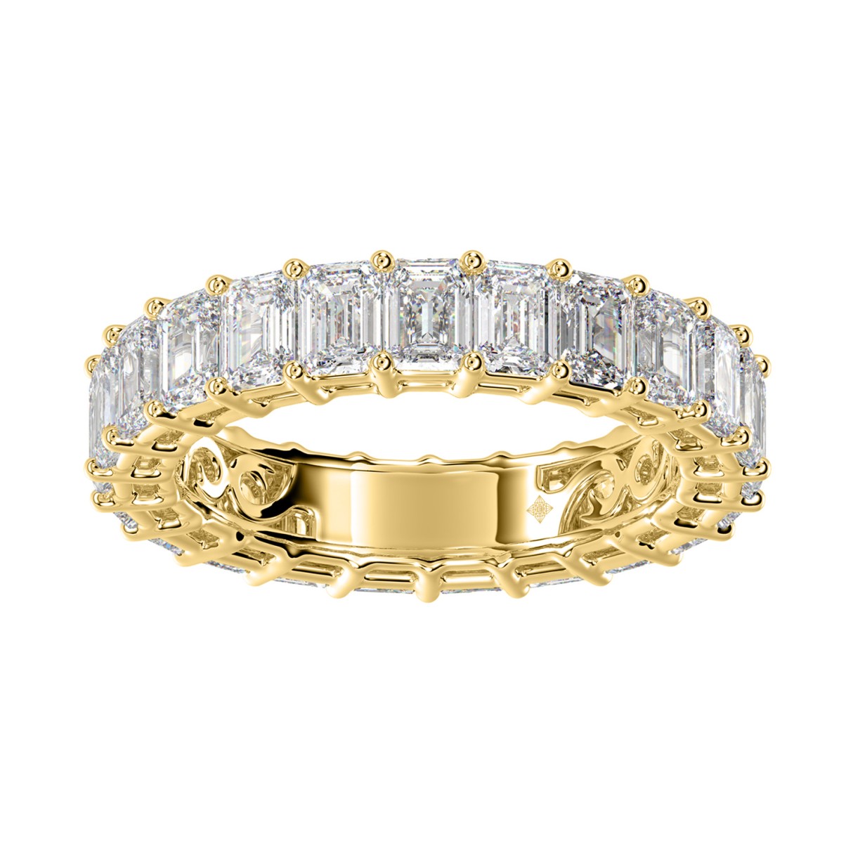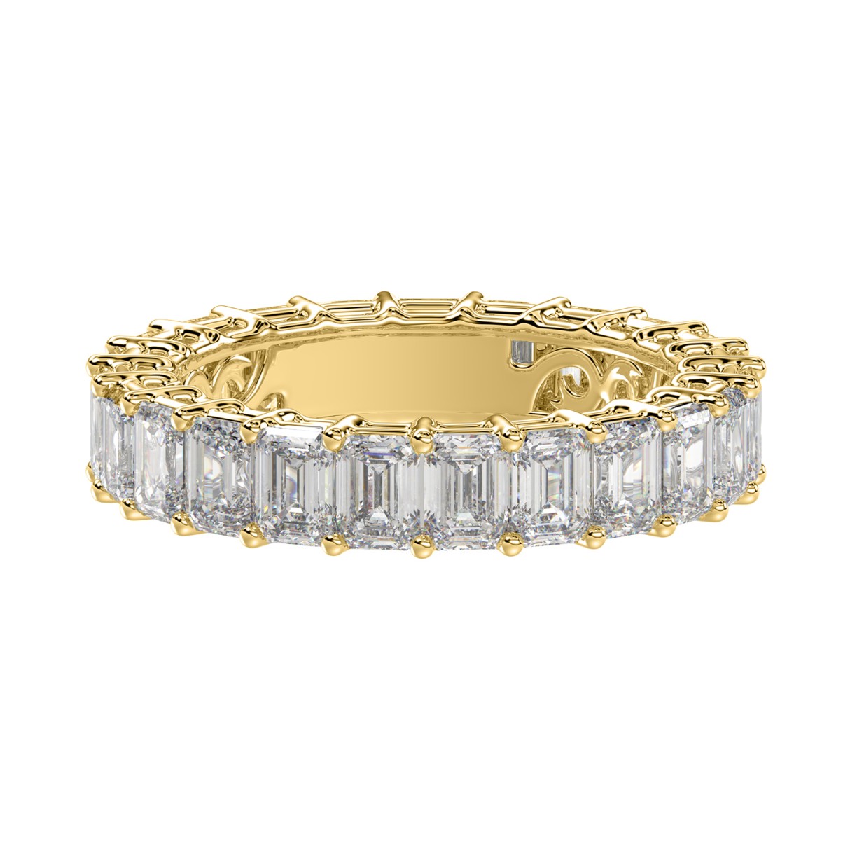 LADIES ETERNITY BAND 3CT EMERALD DIAMOND 14K YELLOW GOLD