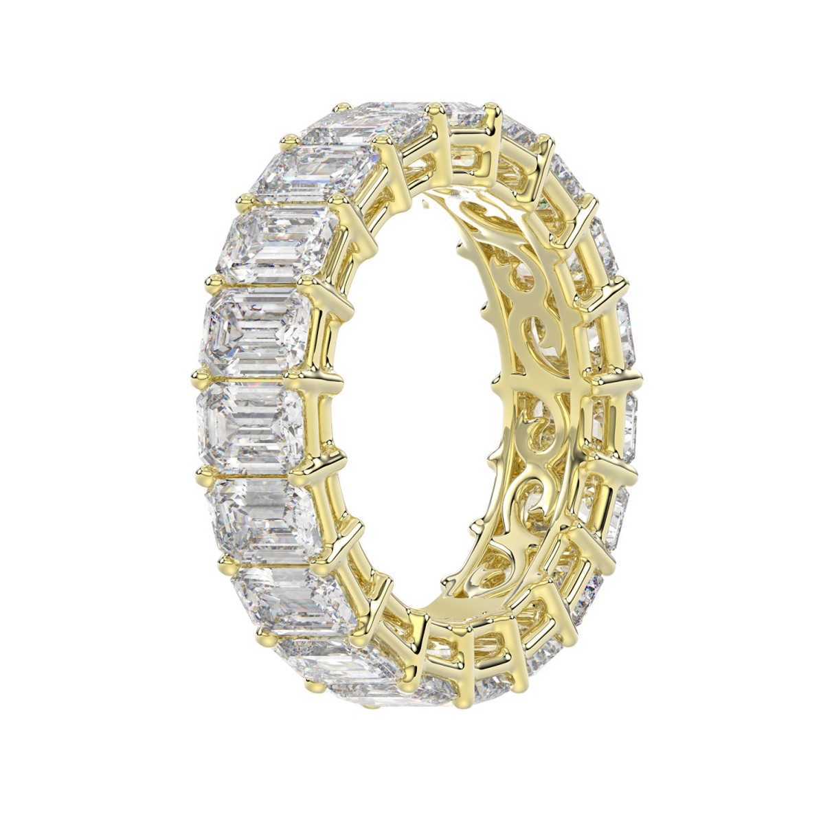 LADIES ETERNITY BAND 6 5/8CT EMERALD DIAMOND 14K YELLOW GOLD