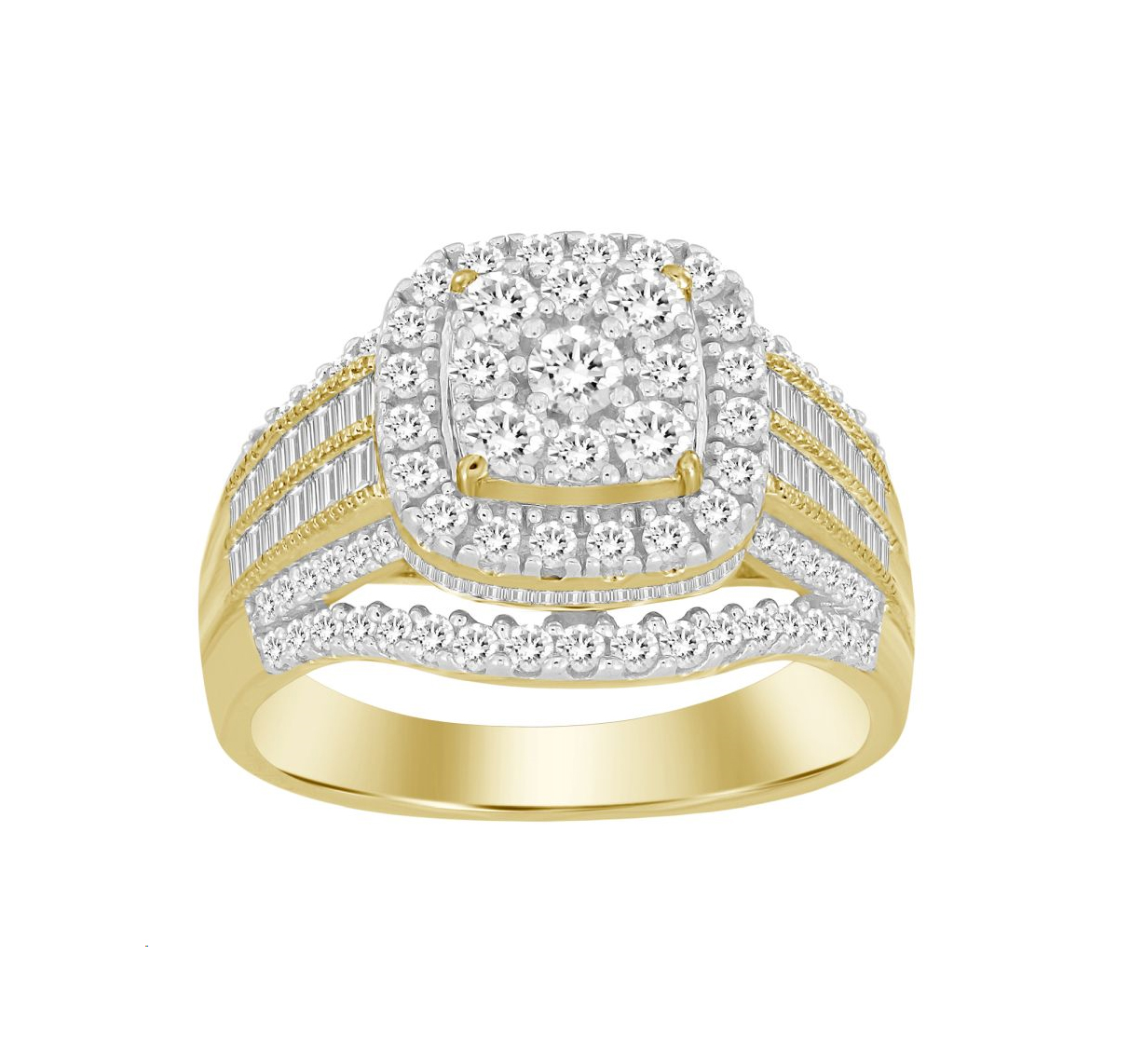LADIES FASHION RING 1.00CT ROUND/BAGUETTE DIAMOND 14K YELLOW GOLD
