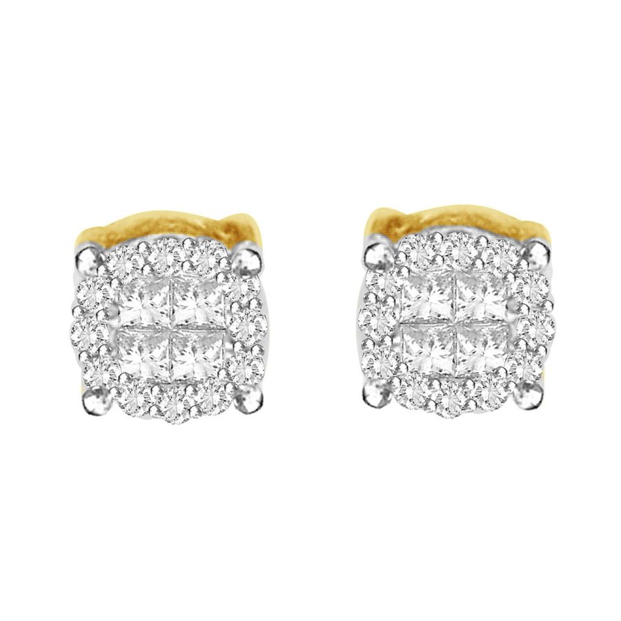 LADIES FIERO EARRINGS 0.25CT ROUND/PRINCESS DIAMOND 14K YELLOW GOLD