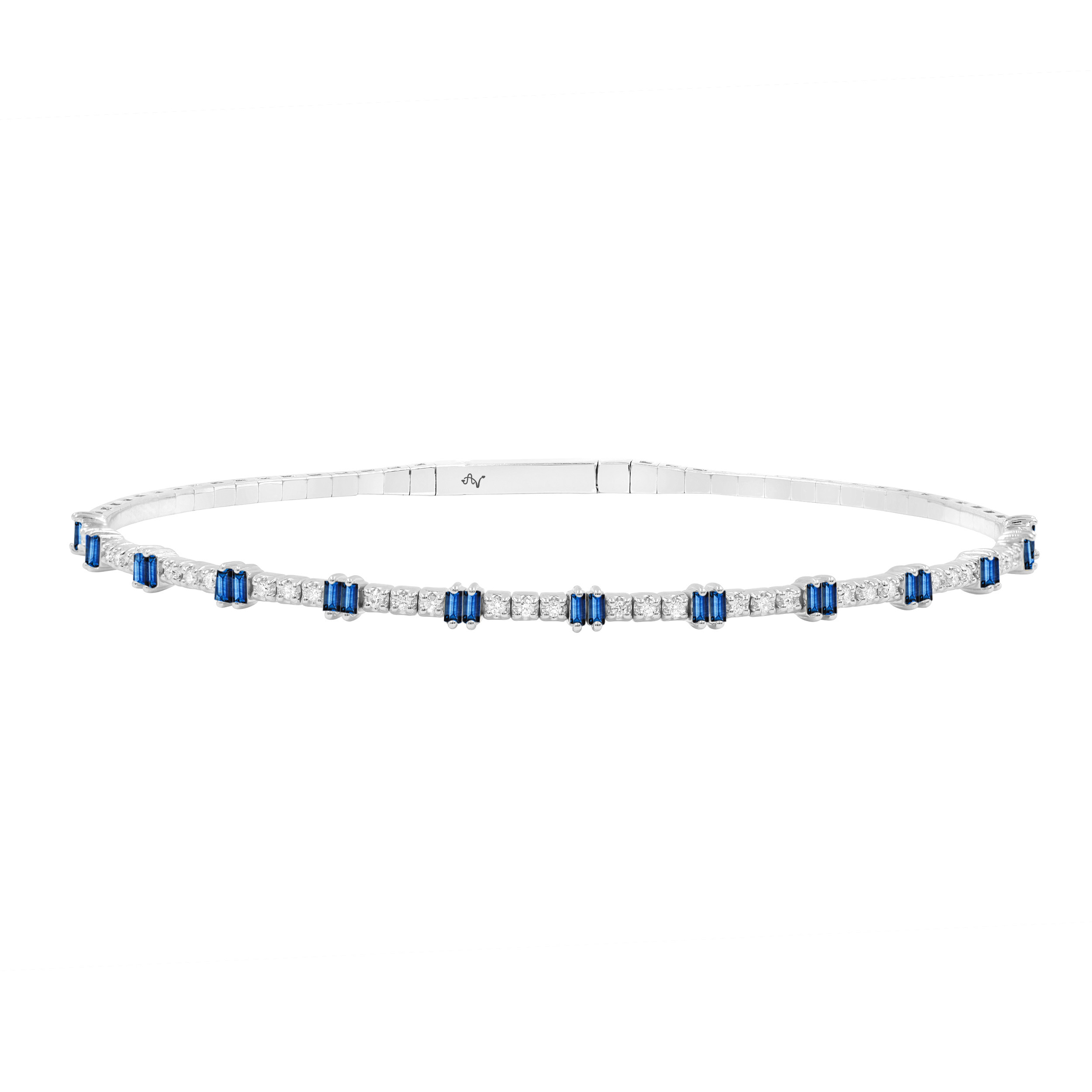 Home Bracelets/bangles LADIES FLEXIBLE BANGLE 1.15CT ROUND/BAGUETTE DIAMOND 14K WHITE GOLD