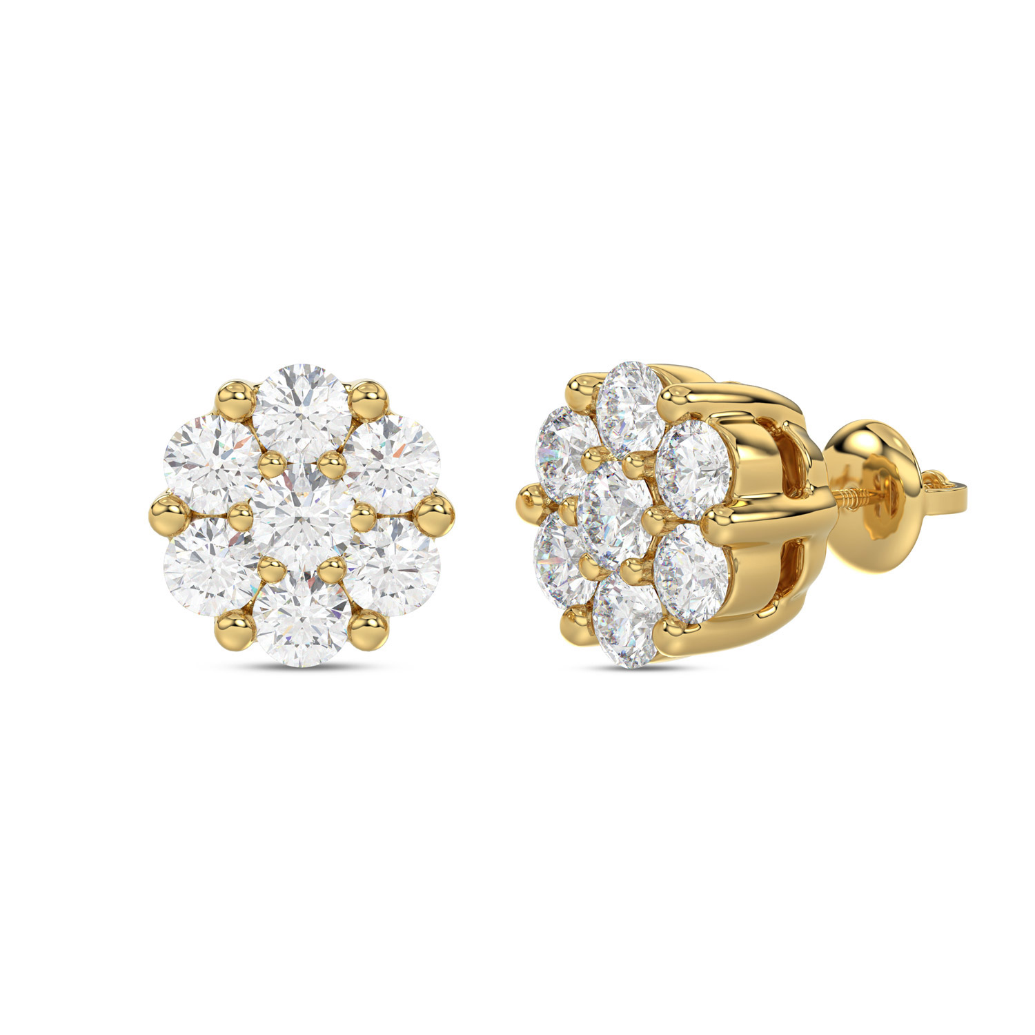LADIES FLOWER EARRINGS 0.15CT ROUND DIAMOND 10K YELLOW GOLD