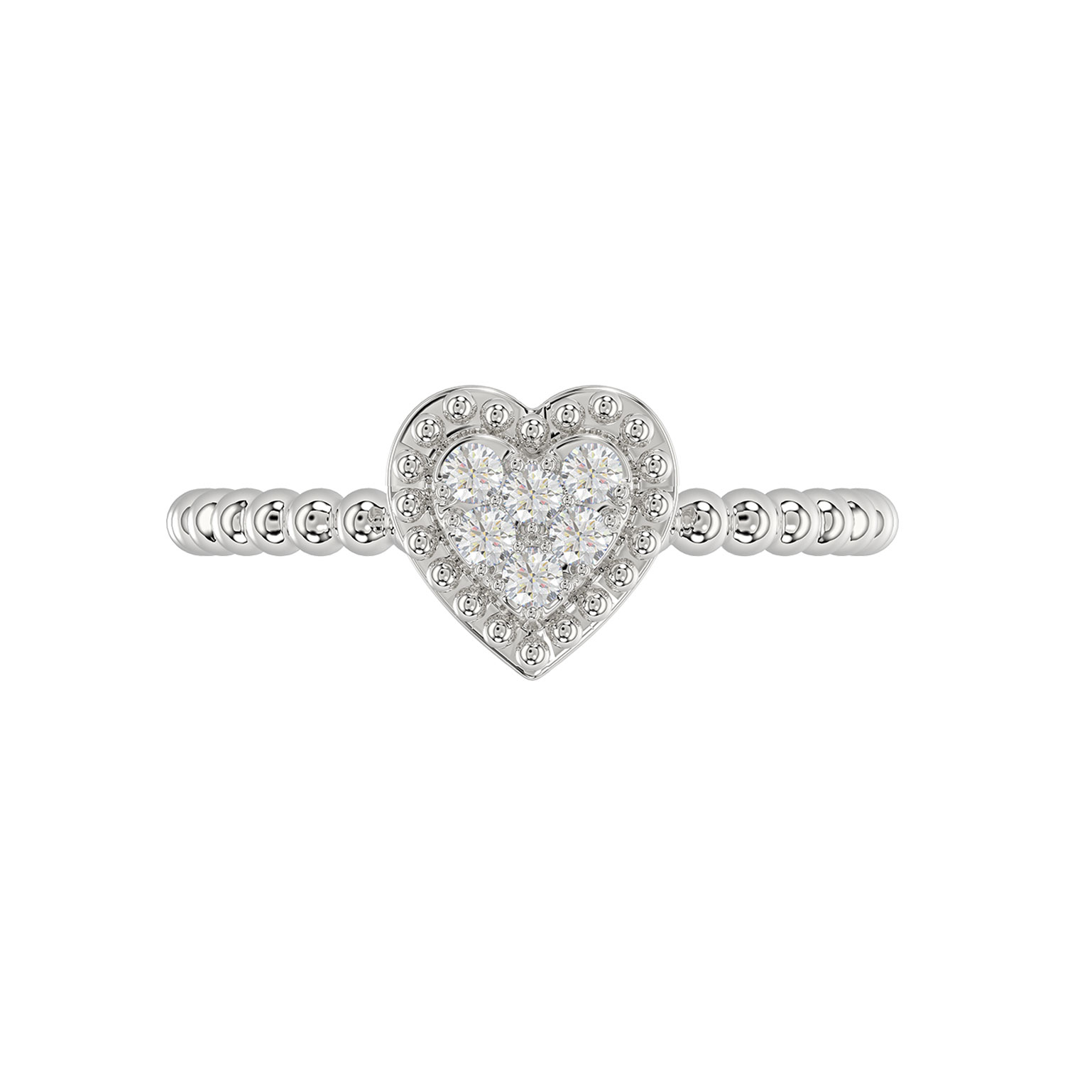 Ladies Halo Ring 0.10Ct Heart Shape Round Diamond Sterling Silver White
