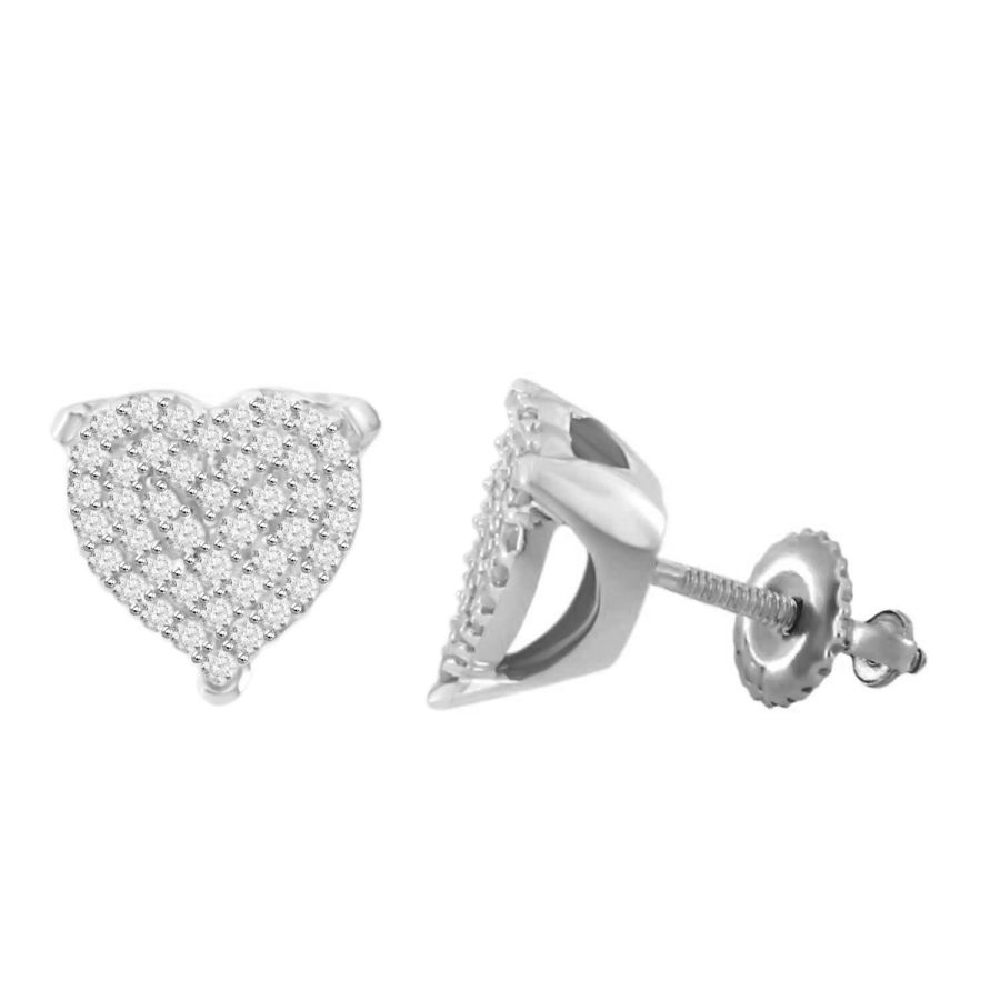 LADIES HEART EARRINGS 0.25CT ROUND DIAMOND STERLING SILVER/WHITE GOLD