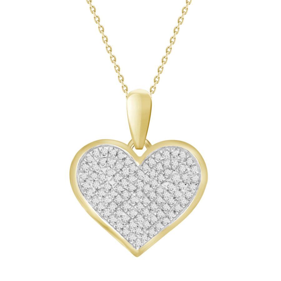 LADIES HEART PENDANT 0.25CT ROUND DIAMOND YELLOW GOLD/STERLING SILVER