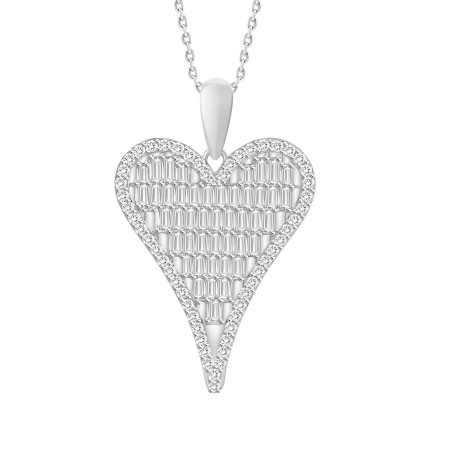 LADIES HEART PENDANT 0.50CT ROUND/BAGUETTE DIAMOND 10K WHITE GOLD