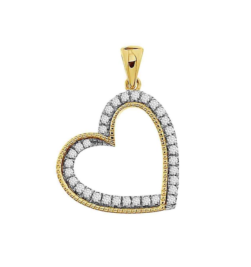 LADIES HEART PENDANT 0.50CT ROUND DIAMOND 10K YELLOW GOLD