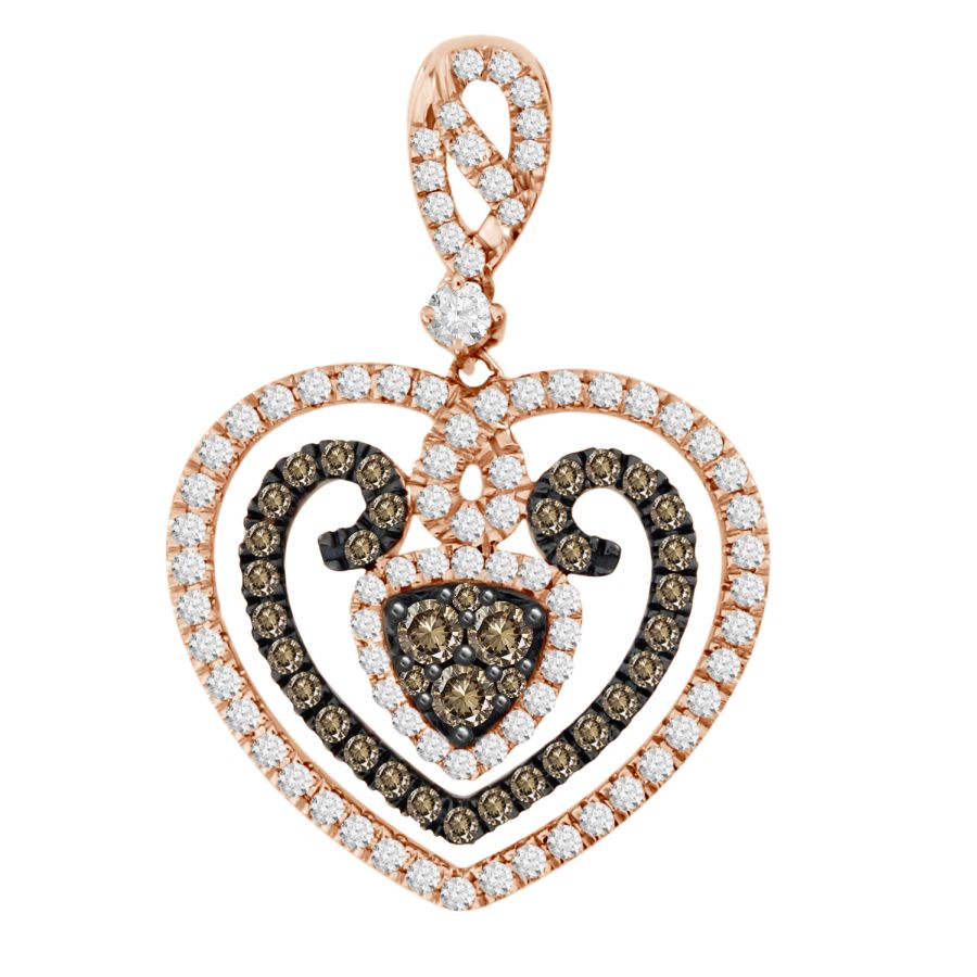 LADIES HEART PENDANT 1.00CT ROUND DARK BROWN DIAMOND 14K ROSE GOLD