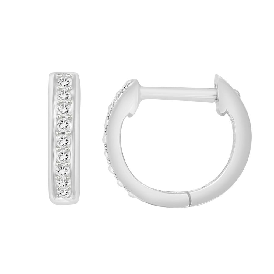 LADIES HOOP EARRINGS 0.05CT ROUND DIAMOND STERLING SILVER/WHITE GOLD