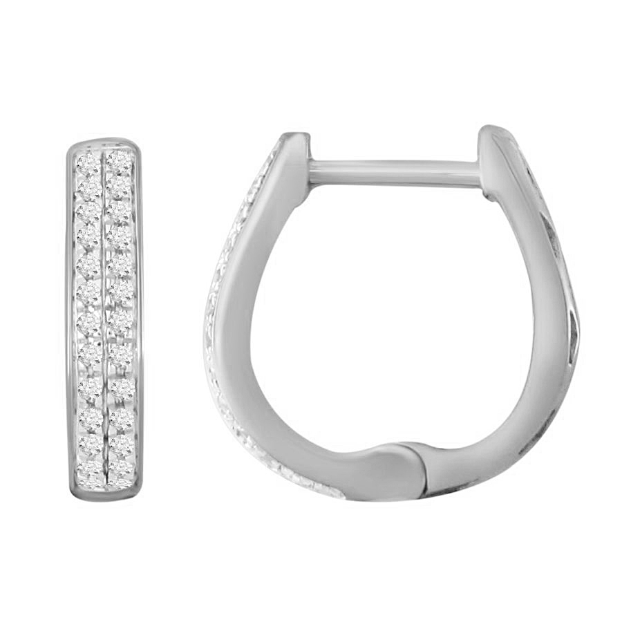 LADIES HOOP EARRINGS 0.25CT ROUND DIAMOND 10K WHITE GOLD