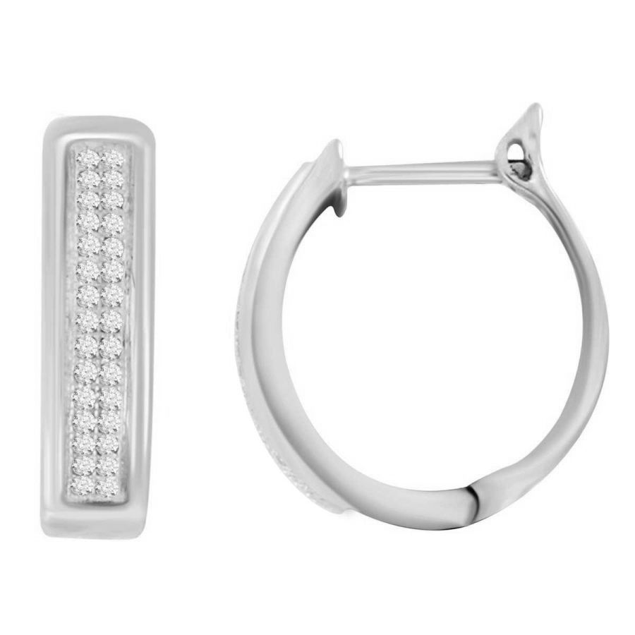 Home Earrings LADIES HOOP EARRINGS 0.15CT ROUND DIAMOND STERLING SILVER/WHITE GOLD