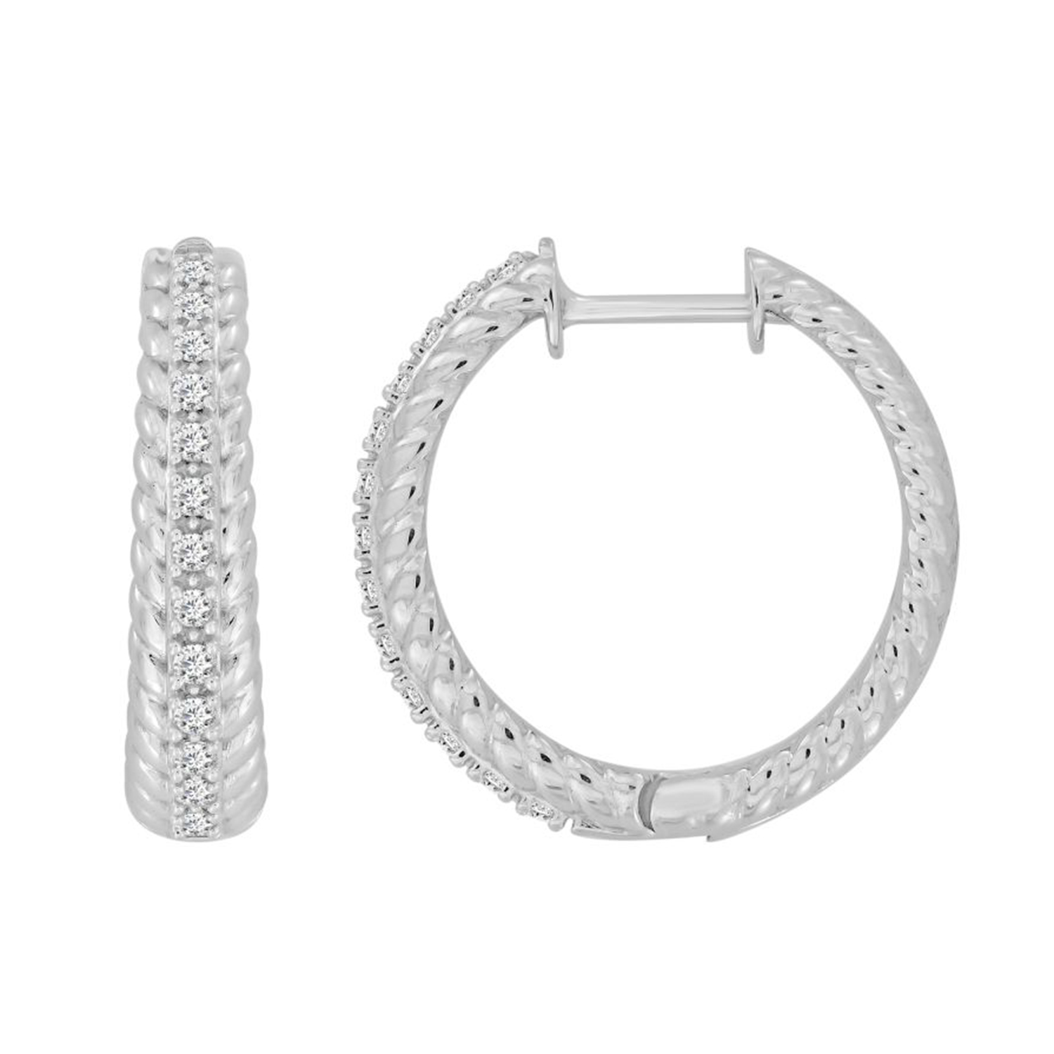 LADIES HOOP EARRINGS 0.20CT ROUND DIAMOND 10K WHITE GOLD