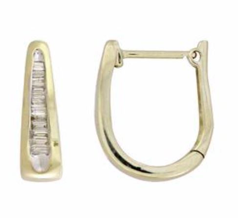 LADIES HOOP EARRINGS 0.25CT BAGUETTE DIAMOND 10K YELLOW GOLD