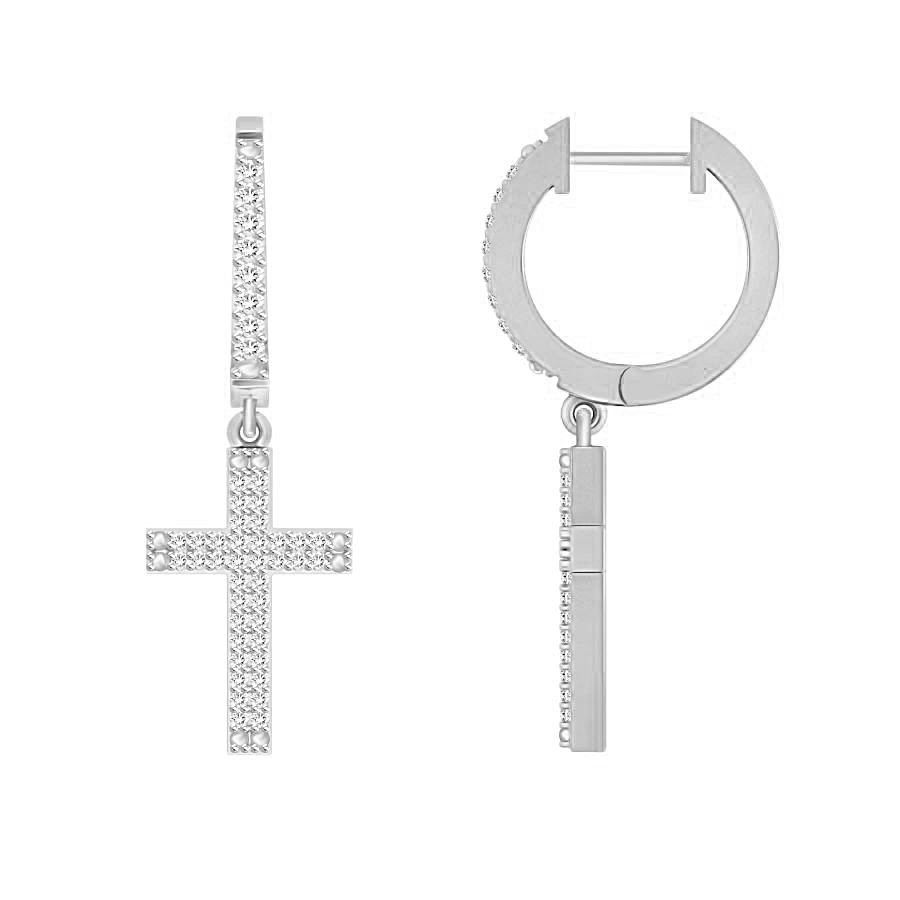 LADIES HOOP EARRINGS 0.25CT ROUND DIAMOND 10K WHITE GOLD