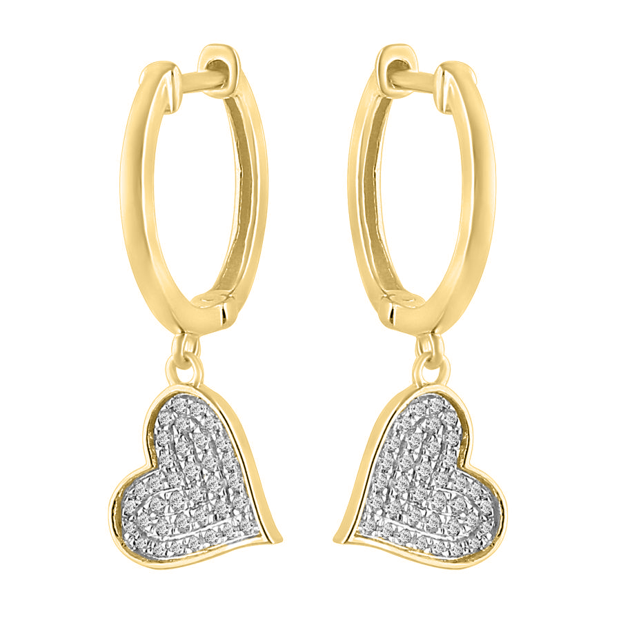 LADIES HOOP EARRINGS 0.25CT ROUND DIAMOND 10K YELLOW GOLD