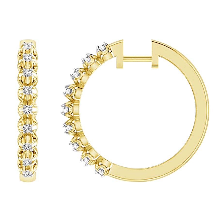 LADIES HOOP EARRINGS 0.25CT ROUND DIAMOND 14K YELLOW GOLD