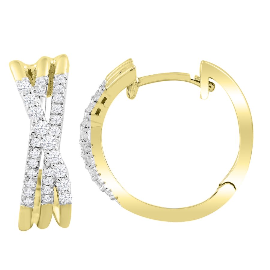 LADIES HOOP EARRINGS 0.25CT ROUND DIAMOND 18K YELLOW GOLD