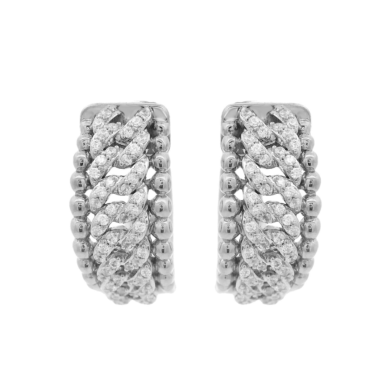 LADIES HOOP EARRINGS 0.30CT ROUND DIAMOND 14K WHITE GOLD