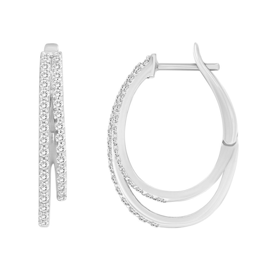 LADIES HOOP EARRINGS 0.33CT ROUND DIAMOND 14K WHITE GOLD