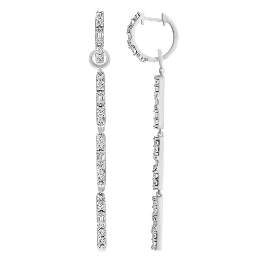 LADIES HOOP EARRINGS 0.50CT ROUND/BAGUETTE DIAMOND 10K WHITE GOLD