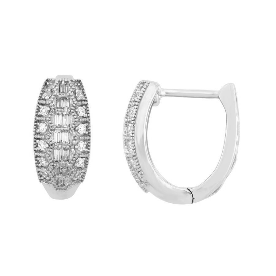 LADIES HOOP EARRINGS 0.50CT ROUND/BAGUETTE DIAMOND 10K WHITE GOLD