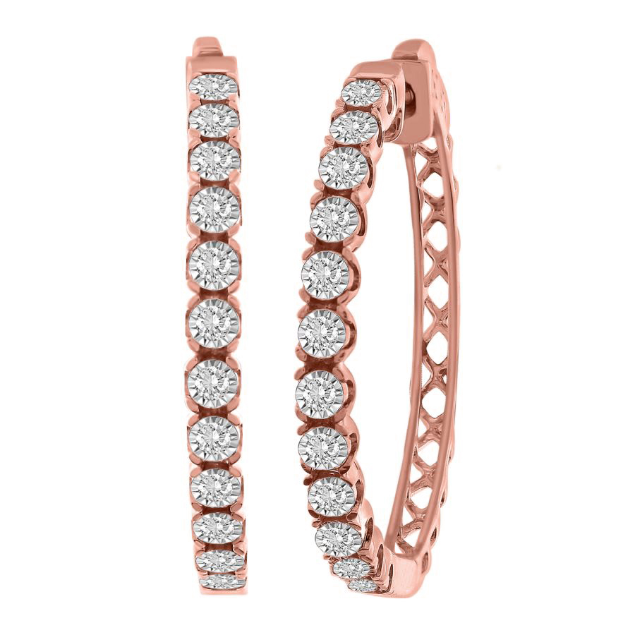 LADIES HOOP EARRINGS 0.50CT ROUND DIAMOND 10K ROSE GOLD